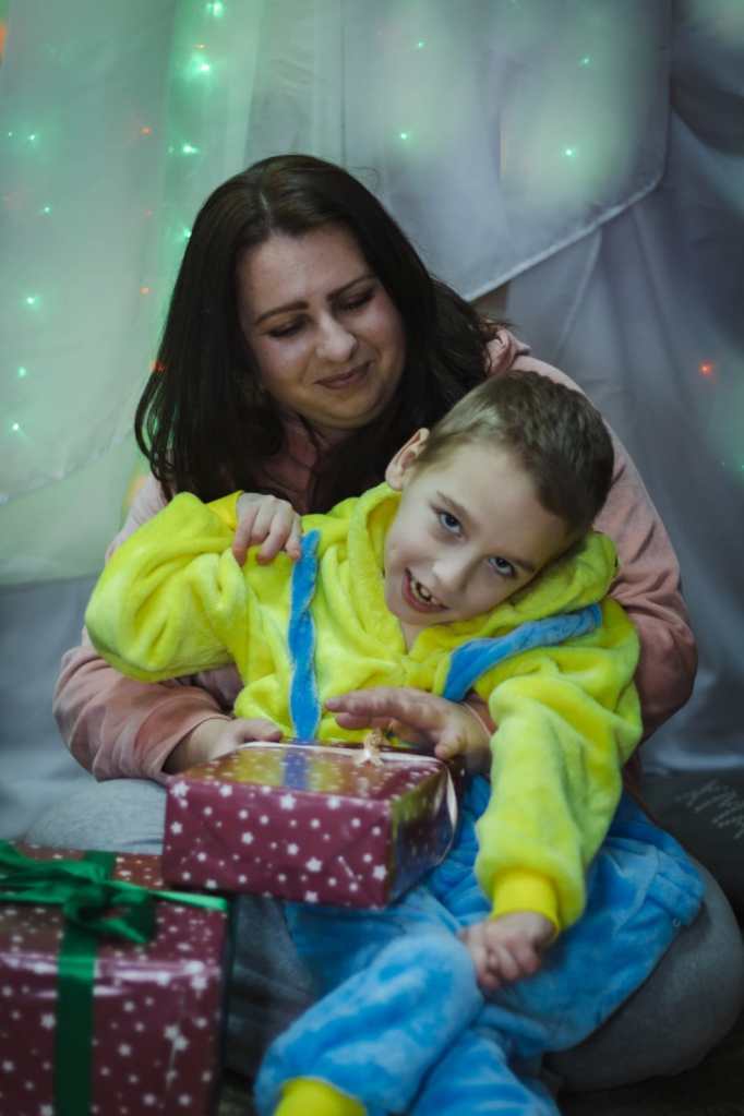 Rollstuhl. Von der frühen Kindheit ihres Sohnes