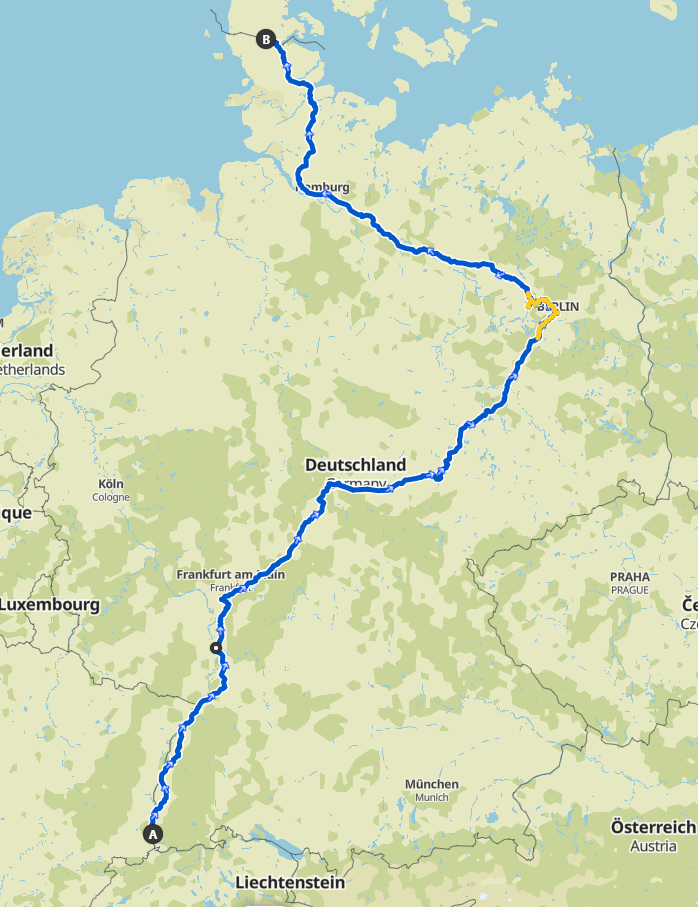 Auf dem Weg nach Berlin fuhr ich durch viele