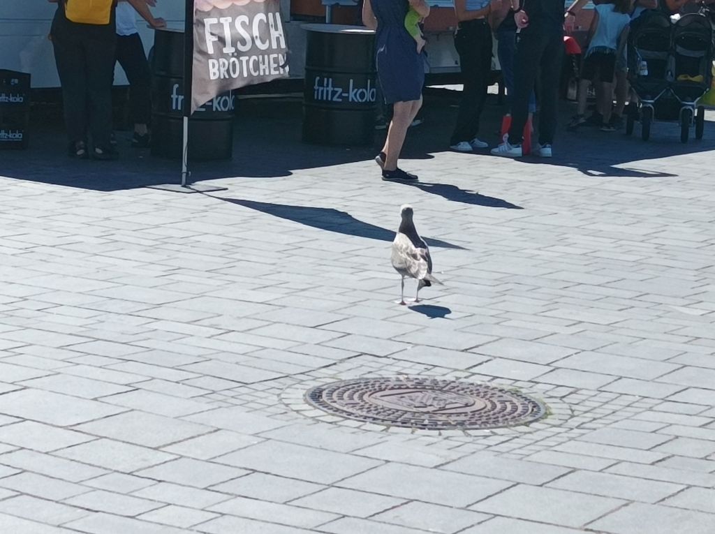 Die Möwe scheint es auch auf ein Fischbrötchen zum
